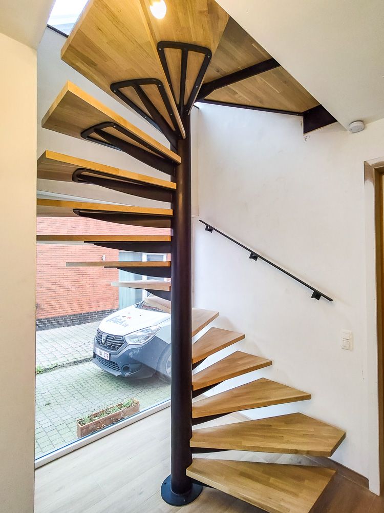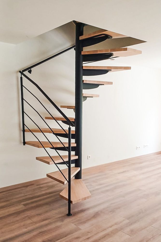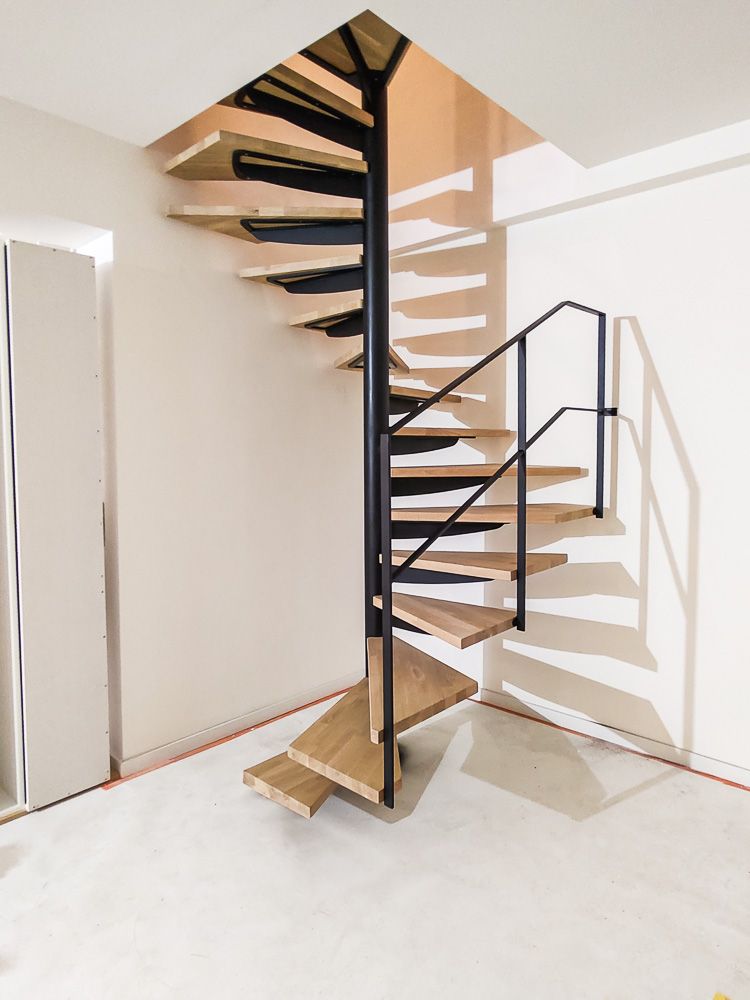 L’escalier colimaçon LOOP est conçu pour les intérieurs où l’escalier est visible : vide sur séjour, mezzanine, loft ou cage d’escalier ouverte. Sa colonne centrale en acier et ses marches en bois massif créent une ligne élégante et régulière, particulièrement lisible en plan carré. Il s’adresse aux projets qui cherchent un escalier colimaçon acier bois design, confortable à l’usage et capable de structurer la pièce sans l’alourdir.