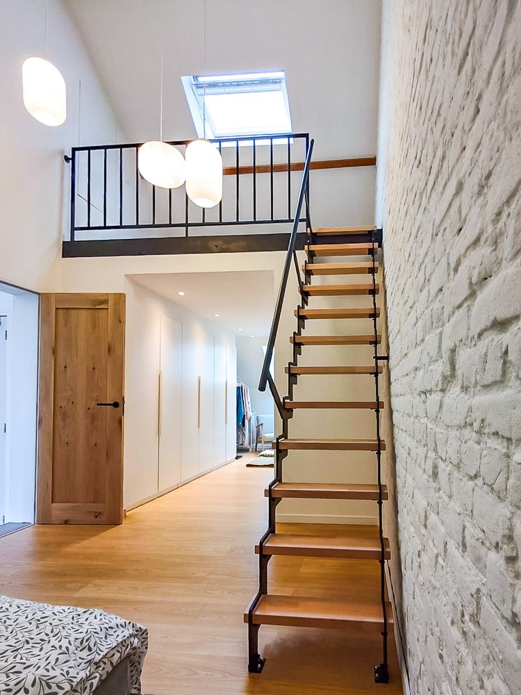 Réalisé sur mesure, l’UP s’ajuste à la hauteur d’étage, à la largeur disponible et au style de votre intérieur. Marches en bois massif, rampe discrète, structure acier fine : l’escalier trouve sa place aussi bien dans un intérieur contemporain que dans une rénovation plus classique. Son positionnement économique permet d’obtenir un escalier sur mesure sans dépasser un budget maîtrisé.