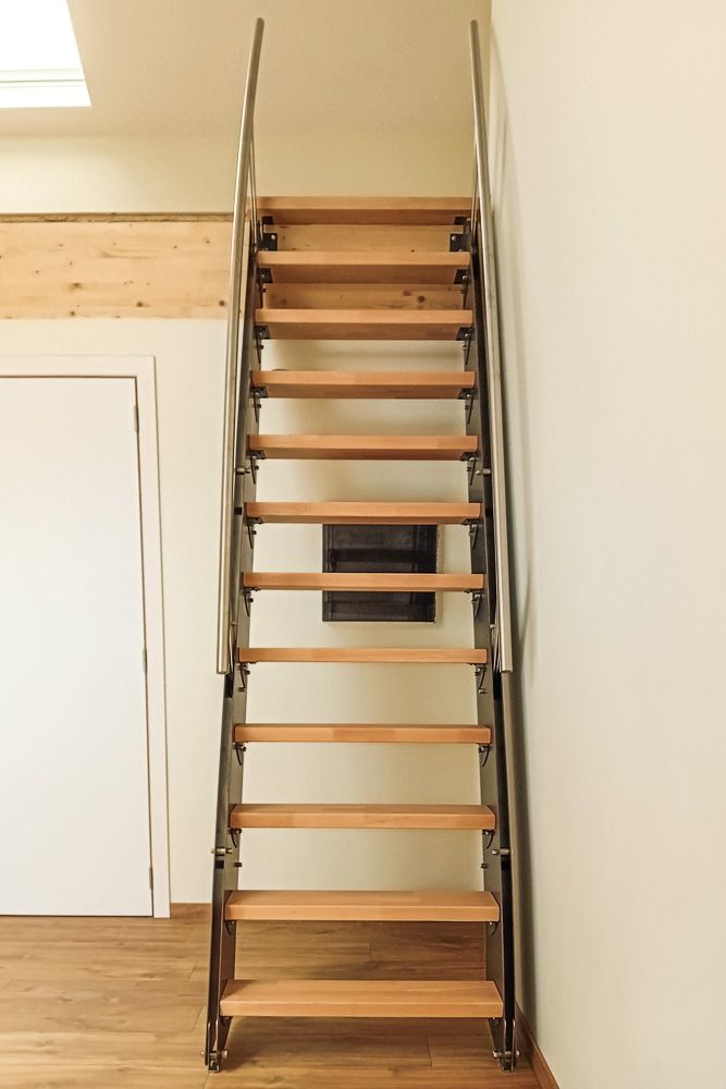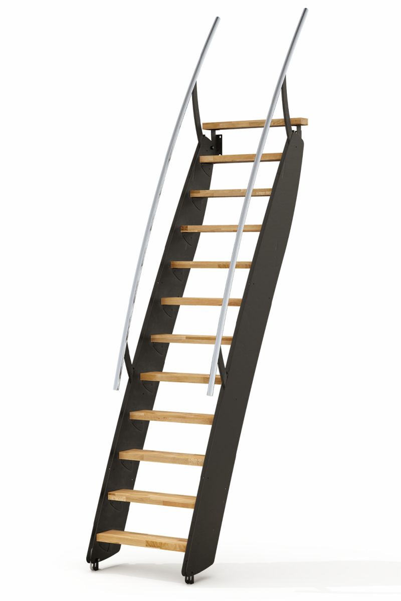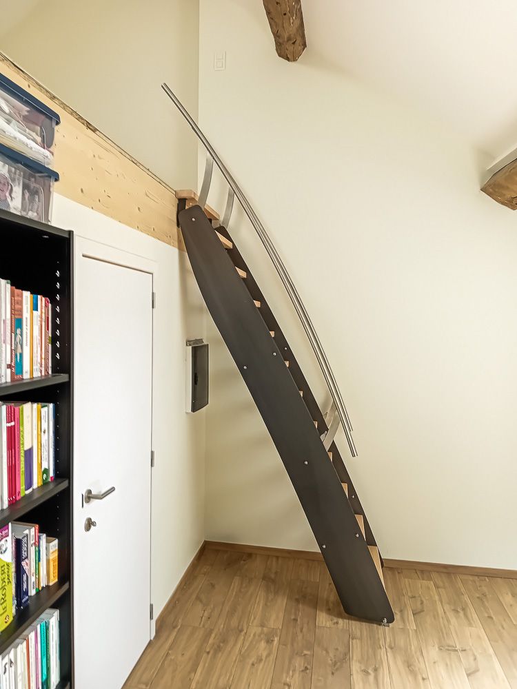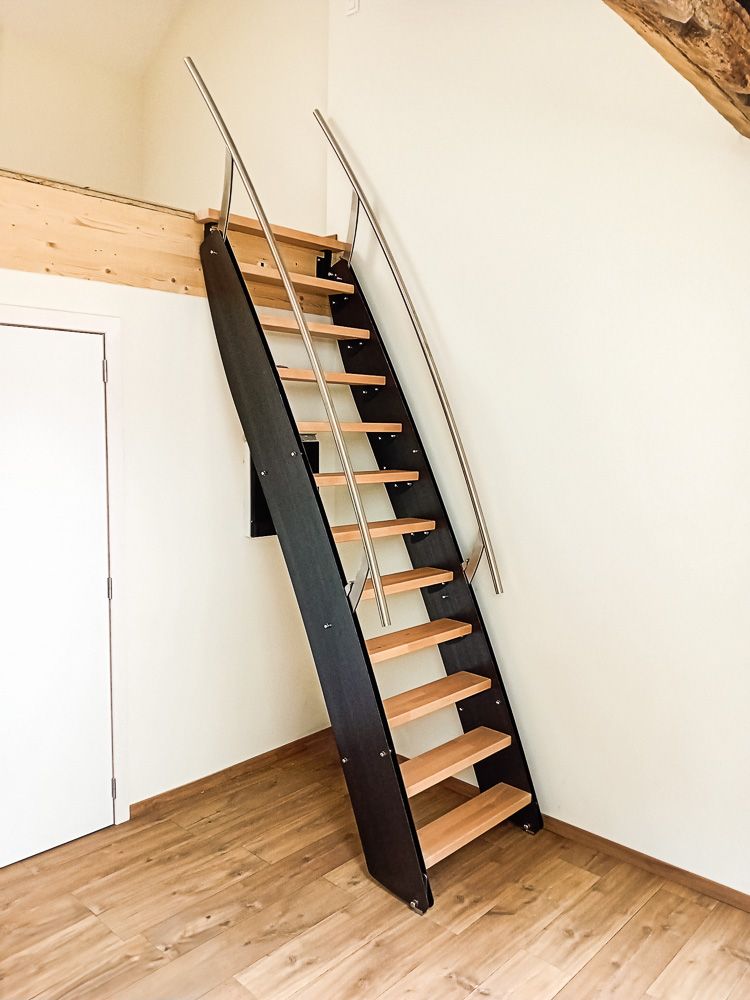 L’échelle-escalier KLARA est conçue pour accéder à une chambre en mezzanine ou à tout espace en hauteur dans un volume restreint. Sa structure étroite permet d’optimiser chaque m² tout en conservant une montée confortable, bien plus agréable qu’une simple échelle. Elle s’adresse aux studios, combles aménagés et chambres d’appoint où l’on cherche une solution d’accès compacte, esthétique et fiable.
