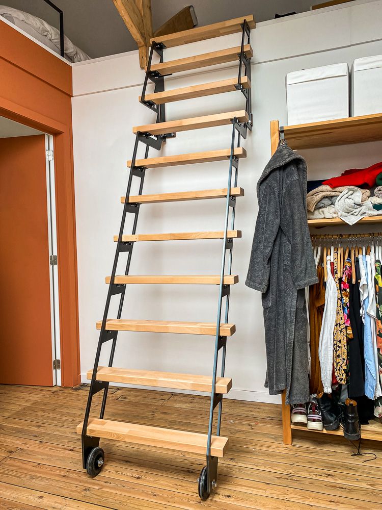 ZIP UP est une échelle-escaliers murale pensée pour accéder ponctuellement à un grenier, une mezzanine ou un local de stockage. Plus confortable qu’une échelle classique, il offre une montée régulière tout en restant compact. Fixée en partie haute au mur, la structure trouve naturellement sa place dans un couloir, un bureau ou une pièce technique sans modifier la configuration de la pièce.