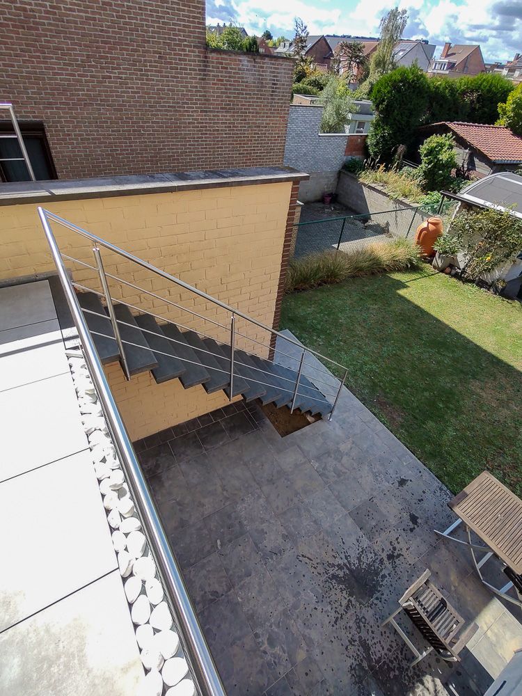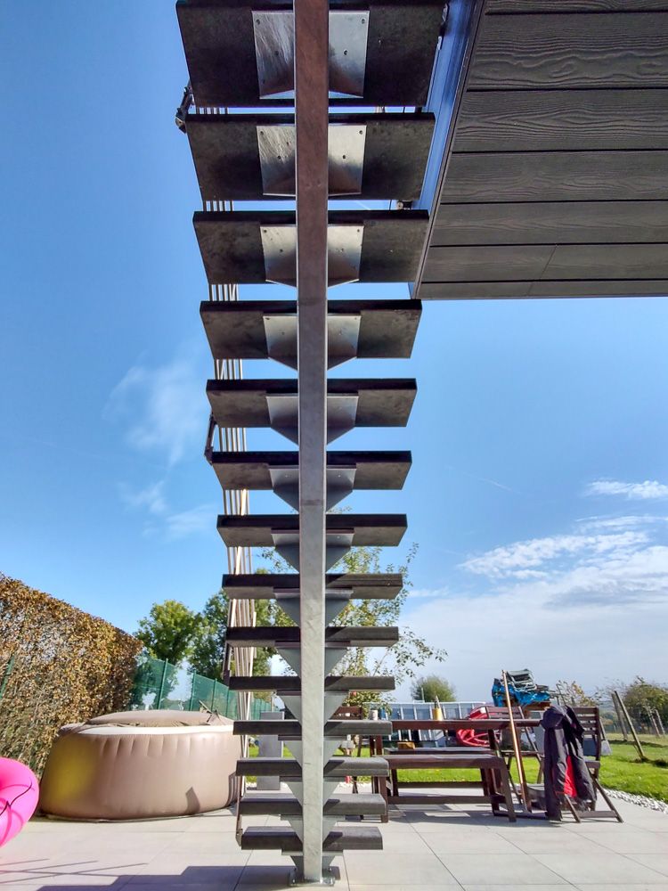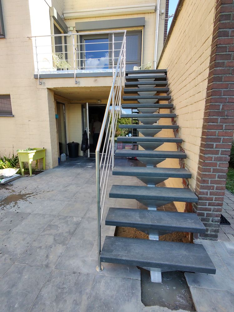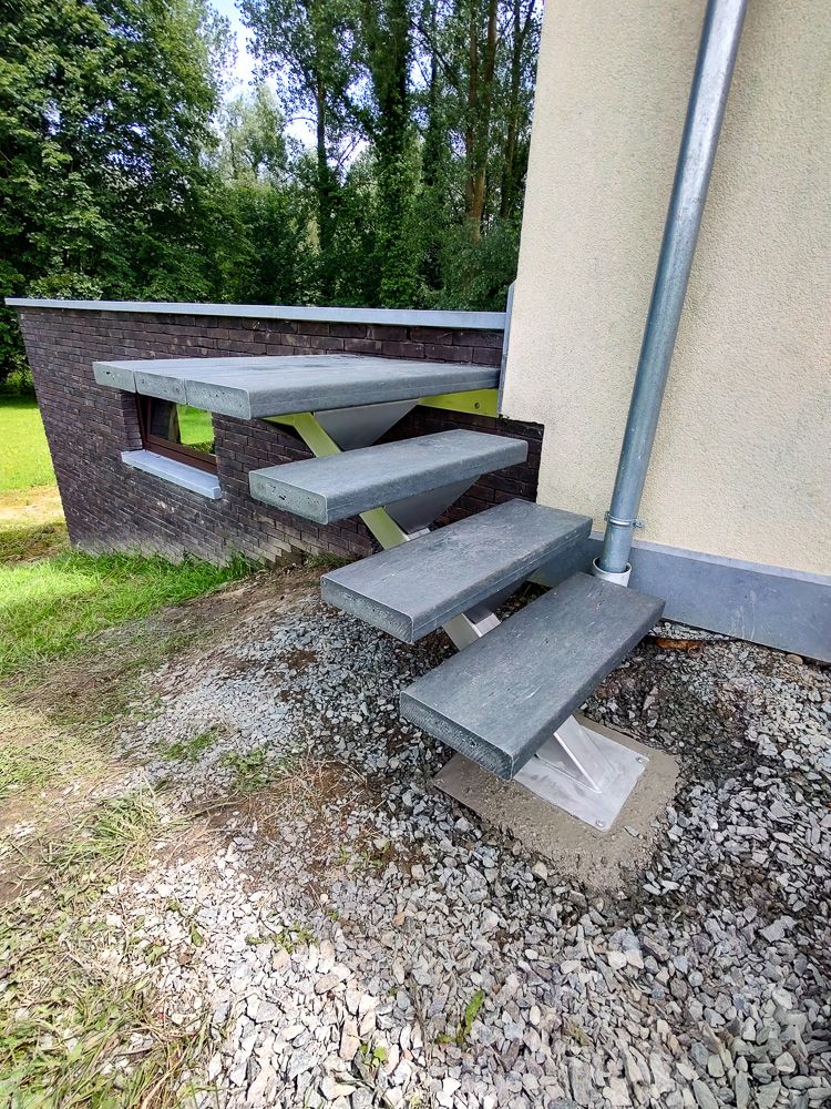 Réalisé sur mesure, l’escalier LOGI EXT s’adapte à la hauteur du niveau, à la largeur disponible et au type de revêtement extérieur. Il répond aux besoins des particuliers comme des bâtiments professionnels qui souhaitent un accès confortable, stable et esthétique. Idéal pour les escaliers extérieurs exposés au climat belge, il conserve son aspect au fil des années avec un entretien limité.